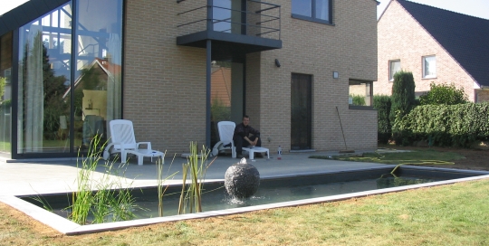 admin2013-03-19T19:43:10+00:00Région Bruxelloise, Transformation d’un ancien bac à sable en pièce d’eau de forme géométrique. Réalisation d’une terrasse en bois exotique. Etanchéité réalisée en polyester.