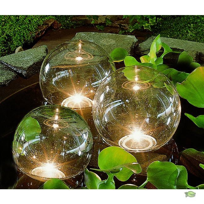 Jeu de trois boules flottantes reliées entre elle, avec un éclairage LED.