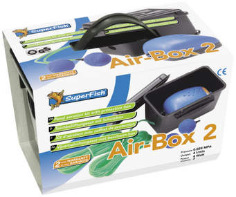 Set d’aération de bassin contenu dans une boîte étanche contre la pluie et toute projection d’eau.